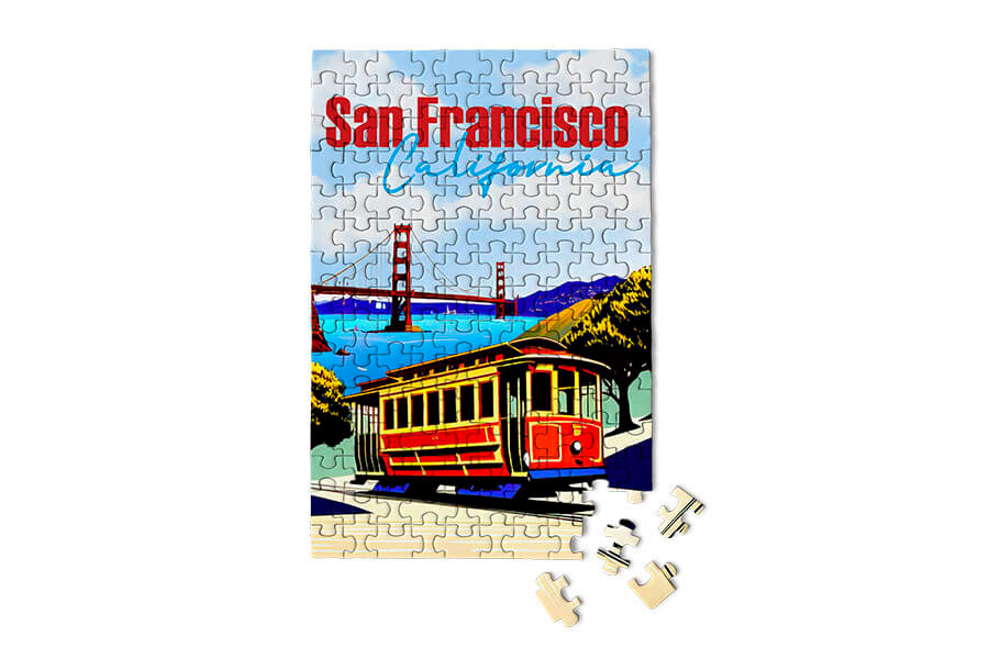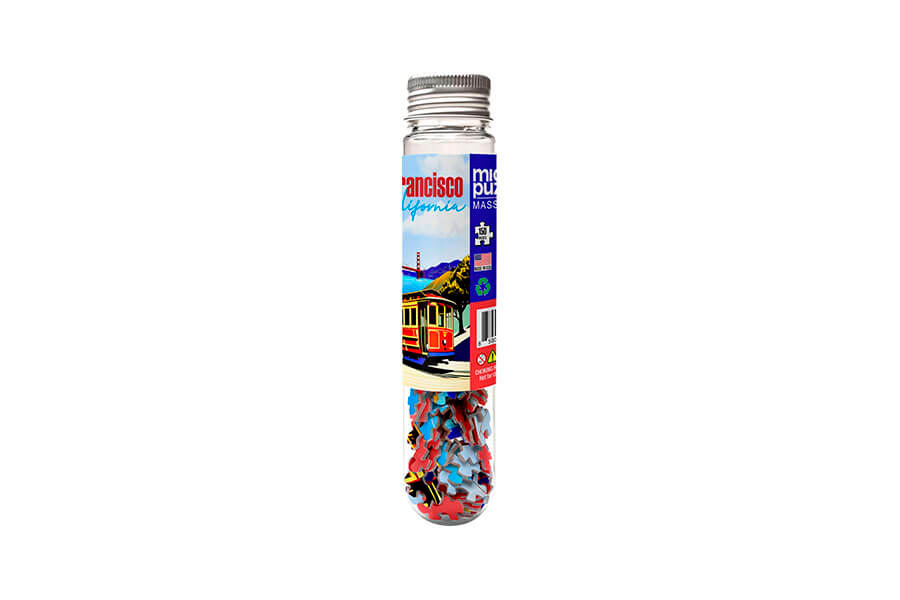 Vier de schoonheid van San Francisco met deze prachtige minipuzzel van 150 stukjes! Met de iconische kabelbaan en de Golden Gate Bridge als decor is dit het perfecte aandenken voor fans van de Bay Area. Ideaal om onderweg te puzzelen.