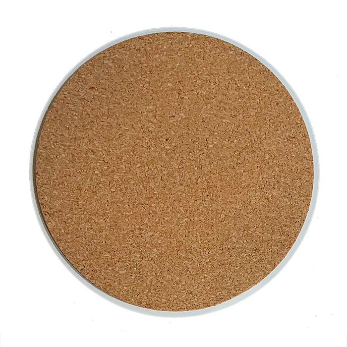 De achterkant is bekleed met kurk om het oppervlak te beschermen.