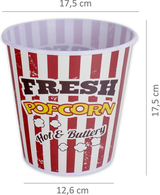 Deze plastic popcornemmer vangt de essentie van weleer op met zijn vintage design.