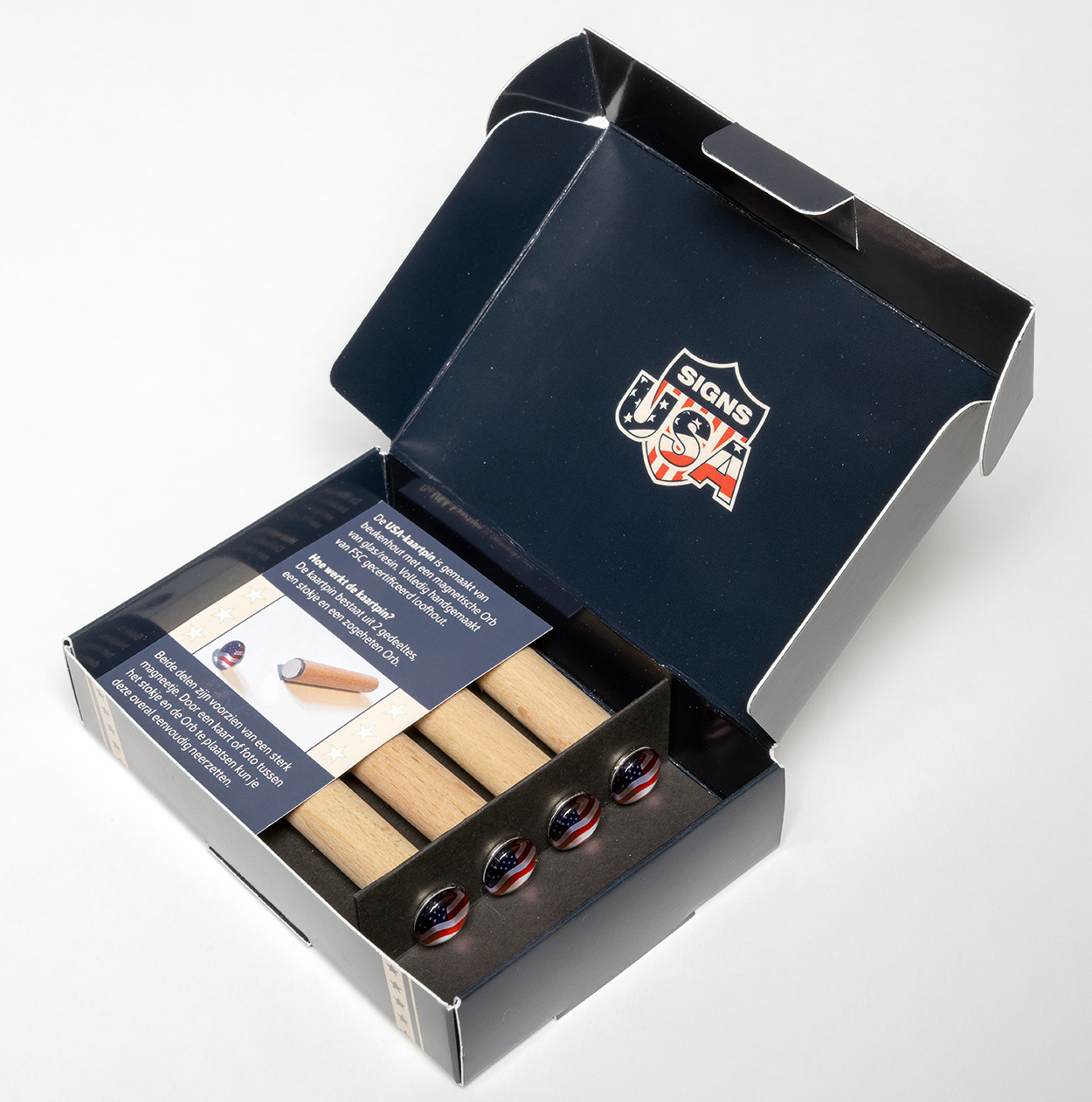 Inhoud 4 x kaartpin – Flag USA (exclusief kaarten)